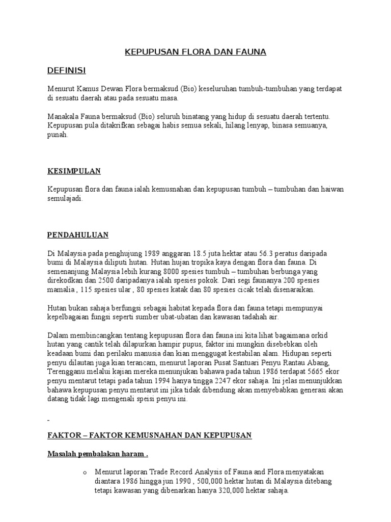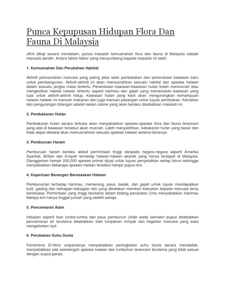 Punca Kepupusan Hidupan Flora Dan Fauna Di Malaysia Pdf